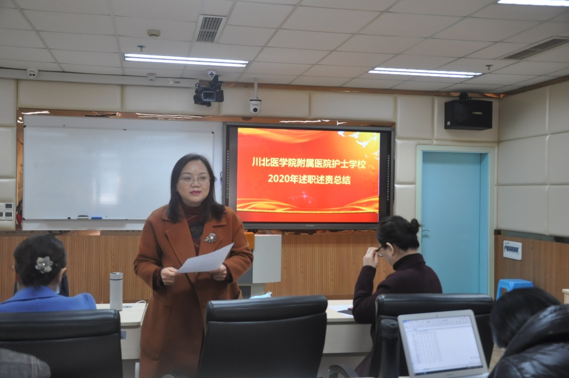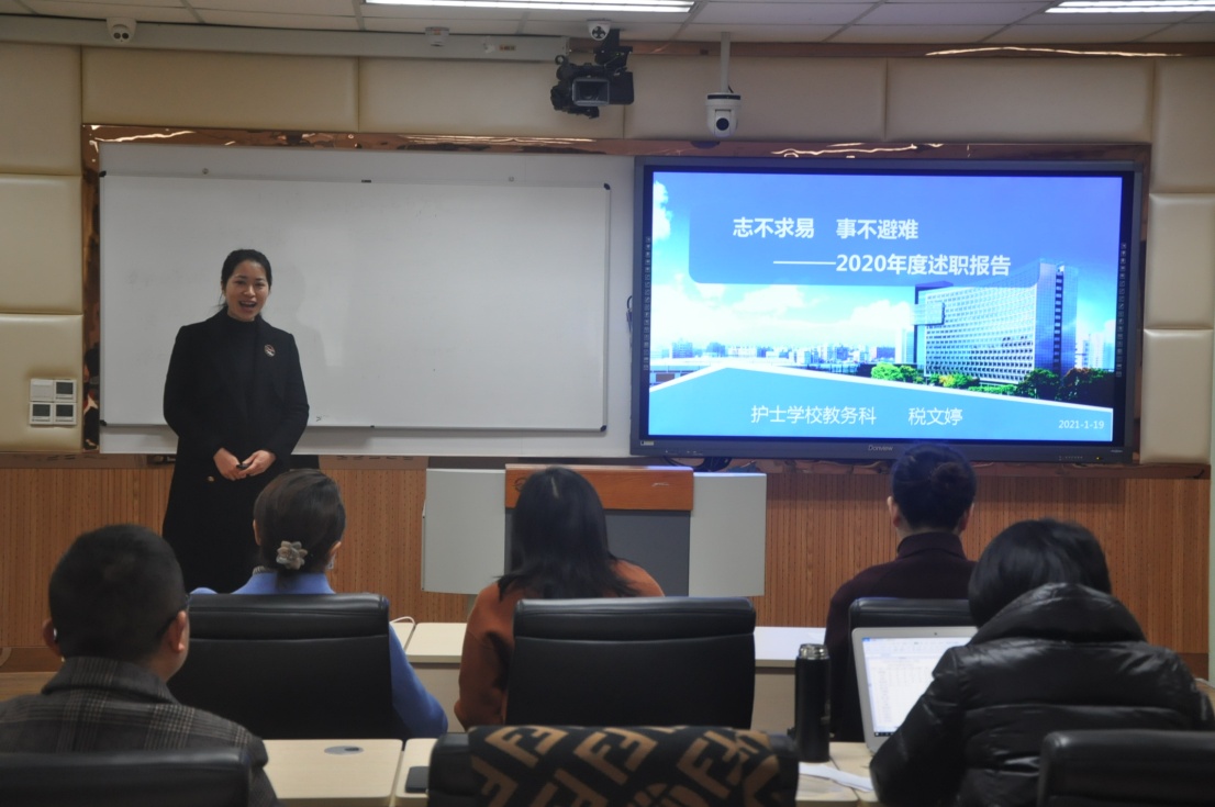 我校召开2020年述职述责会暨科研工作培训会我校召开2020年述职述责会暨科研工作培训会 2021年1月19日,学校在医院新区PBL教室召开2020年述职述责会暨科研工作培训会,校长汪淼芹主持会议,学校全体中层干部、专任教师参加会议。